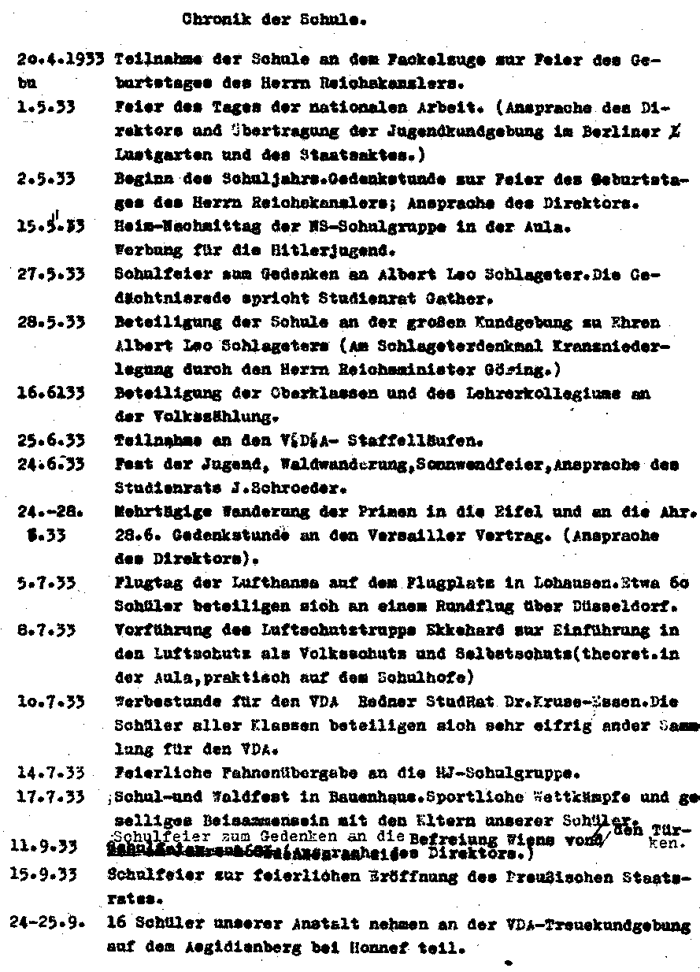 Die Schuljahre 1933 bis 1935 am Prinz-Georg Gymnasium